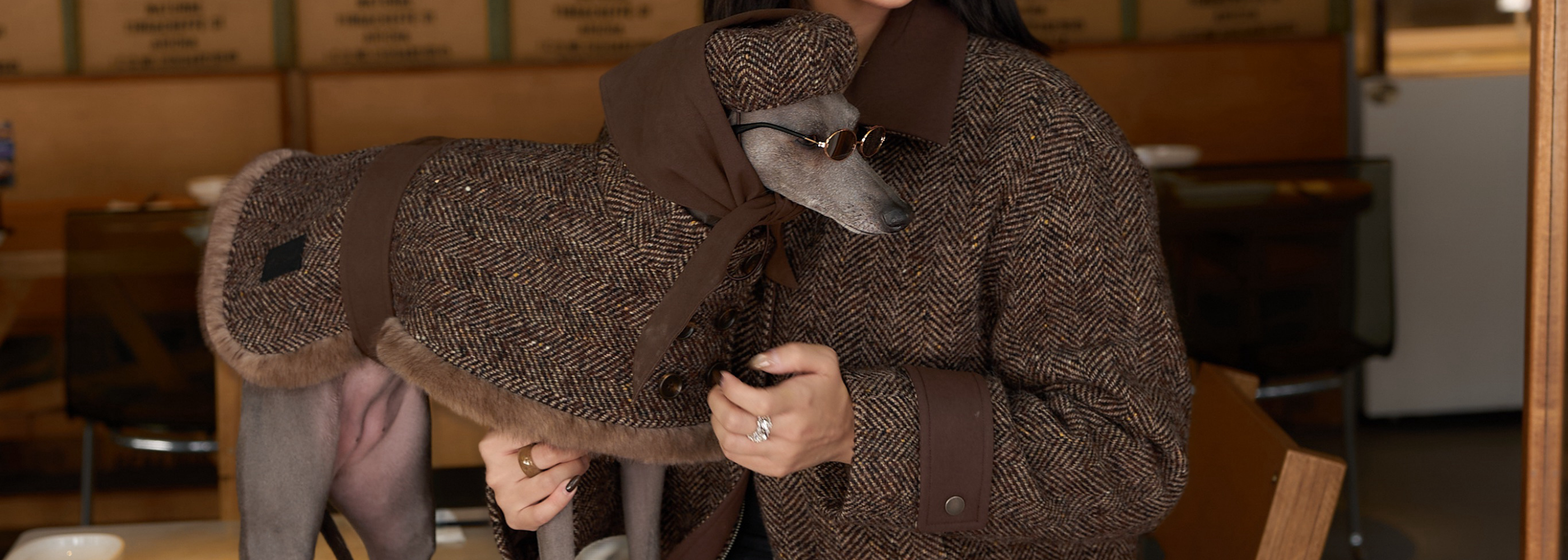 Wrap your pup in elegance with our exquisitely tailored wool tweed collection.