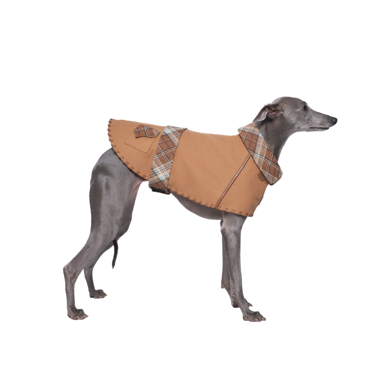 Wrap your pup in adventure-ready comfort this winter. The NOMAD Suede Coat pairs a cozy brownish-green vegan suede body with whipstitched vegan leather accents and rustic yellow plaid touches for an effortlessly boho look. Thoughtfully designed for both style and function, it delivers exceptional warmth and a soft, comfortable fit on every outing. From brisk trail walks to curled-up evenings by the fire, Nomad keeps your dog snug, stylish, and prepared for wherever the journey goes next.