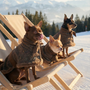 Treat your dog to the sophisticated comfort they deserve with the BARROW Hood-Scarf Coat—a modern twist on the classic hunting jacket, thoughtfully crafted for today’s fashionable pups. Rich brown herringbone alpaca tweed meets plush dark suede, creating a luxurious look that’s both warm and timeless. The padded lining provides superior warmth, ensuring your dog remains cozy on even the coldest days.