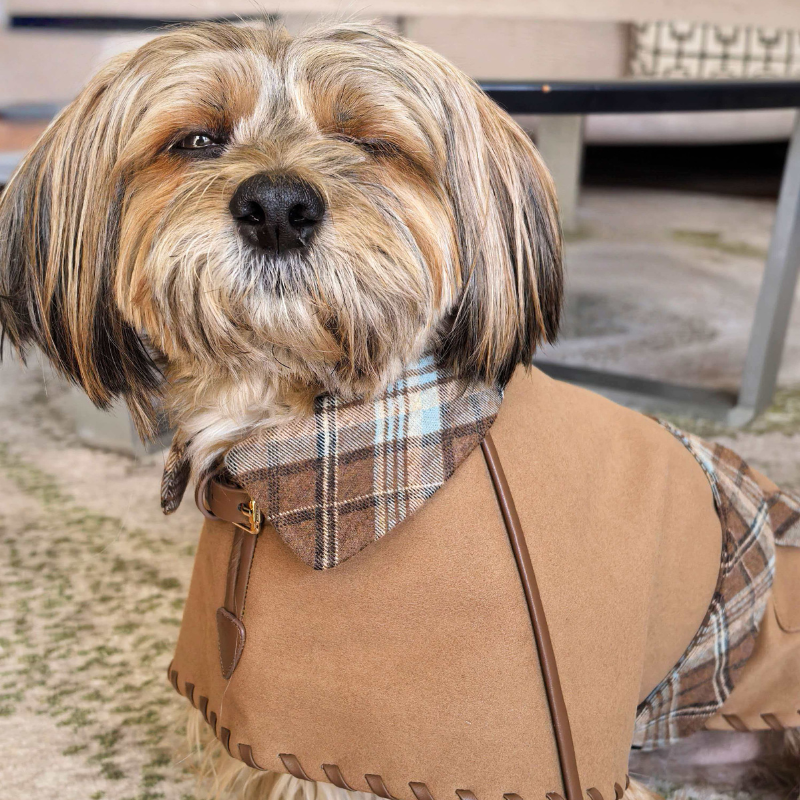 Wrap your pup in adventure-ready comfort this winter. The NOMAD Suede Coat pairs a cozy brownish-green vegan suede body with whipstitched vegan leather accents and rustic yellow plaid touches for an effortlessly boho look. Thoughtfully designed for both style and function, it delivers exceptional warmth and a soft, comfortable fit on every outing. From brisk trail walks to curled-up evenings by the fire, Nomad keeps your dog snug, stylish, and prepared for wherever the journey goes next.